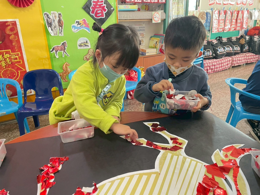 相簿名稱: 114學年度(上)藝術-師生共創-迎接馬年(撕貼畫)(小維尼)